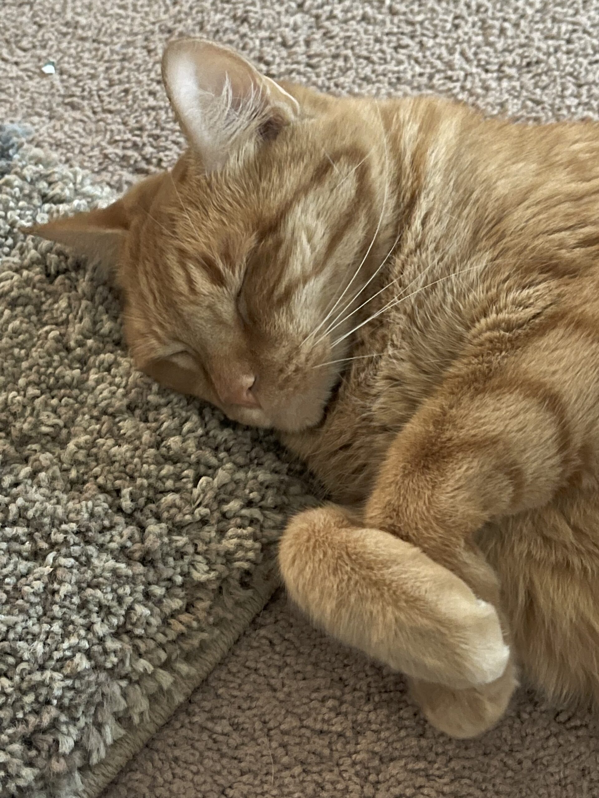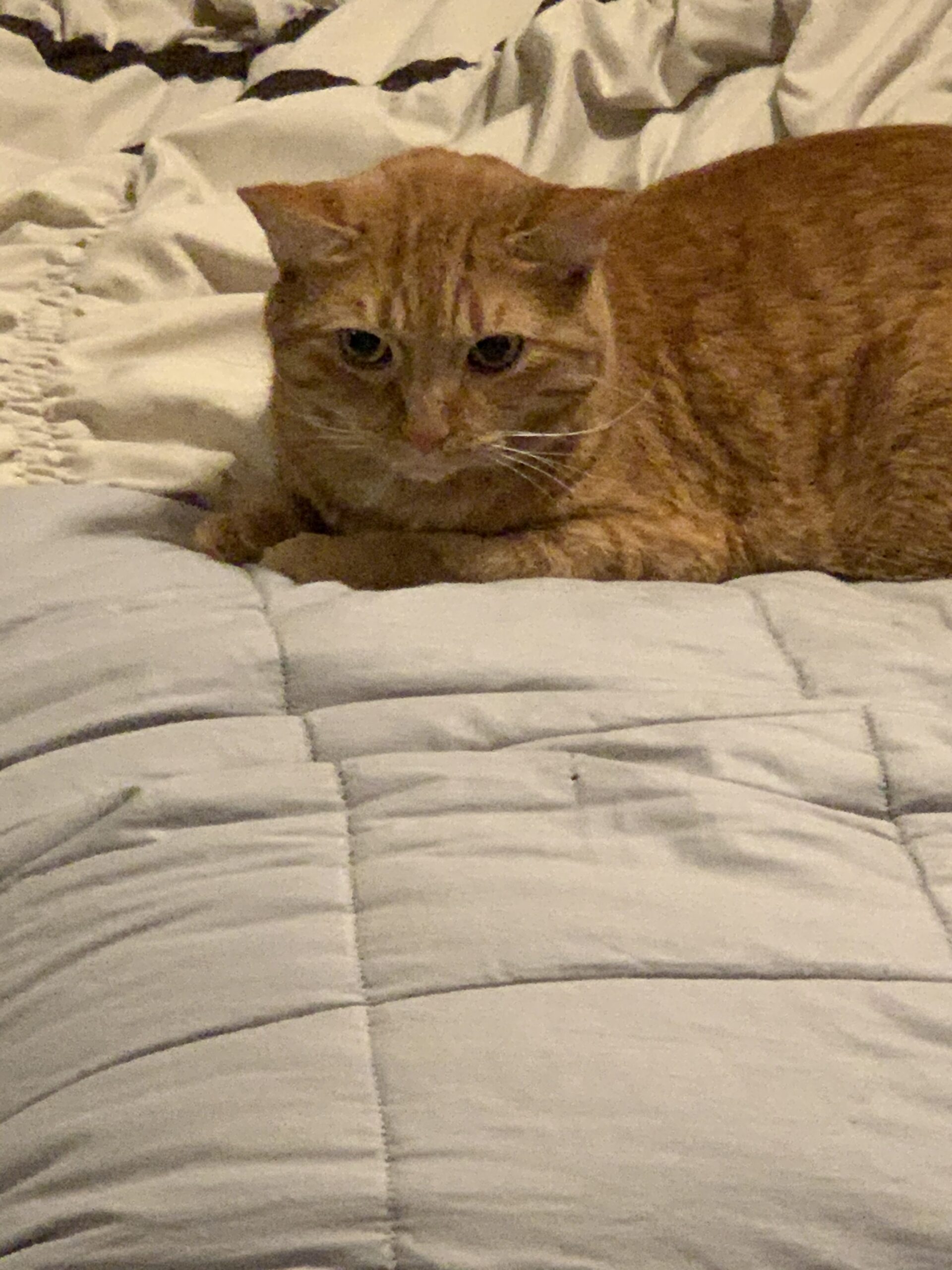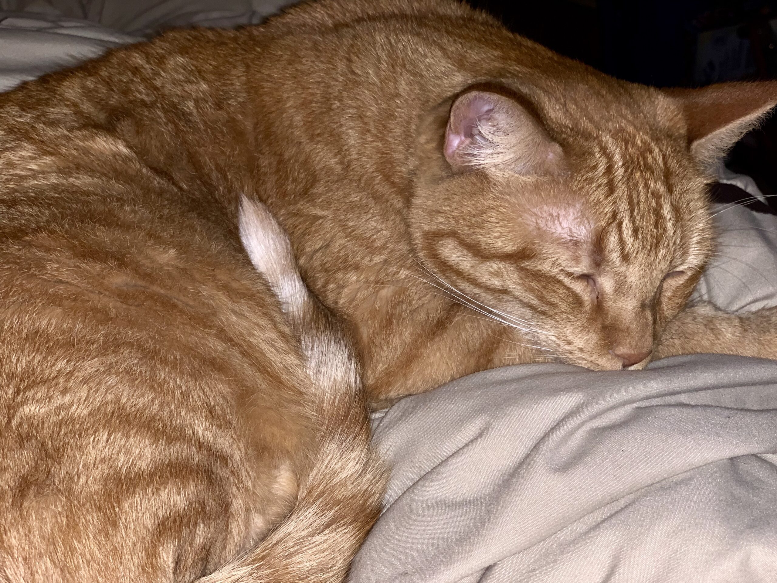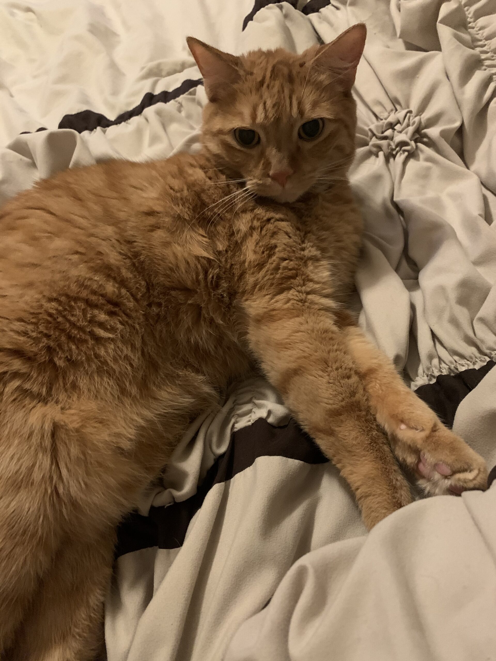 Meow Meow was a shelter rescue that we Meow meow was adopted for my birthday 13 years ago. She was a beautiful dark orange kitty. She loved bed time snuggles, shower water, and chin scratches. Meow meow had a big personality and loved to play. I miss squeezing her little bean toes. She is greatly missed and forever loved. She was my buddy & I wish I could have her back.